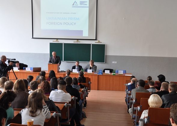 19 вересня 2017 р. в Прикарпатському національному університеті імені Василя Стефаника відбулася презентація щорічного аналітичного дослідження «Українська призма: зовнішня політика 2016». Організаторами заходу виступили Центр НАТО, кафедра політології, кафедра міжнародних відносин Прикарпатського національного університету імені Василя Стефаника, Рада зовнішньої політики «Українська призма», Представництво Фонду імені Фрідріха Еберта в Україні. Модератори презентації – директор наукового інформаційно-аналітичного Центру НАТО Олег Білоус та завідувач кафедри міжнародних відносин Ігор Гурак. Присутніми на презентації були викладачі та студенти факультету історії, політології і міжнародних відносин. Серед почесних гостей – Геннадій Максак, голова Ради зовнішньої політики «Українська Призма», голова Громадської Ради при МЗС України, Член Громадської ради при Комітеті Верховної Ради України у закордонних справах; Ярослав Чорногор, член Ради, експерт, Рада зовнішньої політики «Українська Призма»; Олексій Крисенко, керівник програми досліджень Росії та СНД, Рада зовнішньої політики «Українська Призма», кандидат філософських наук, доцент кафедри політології Харківського національного університету ім. В.Н. Каразіна.