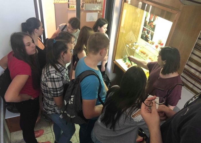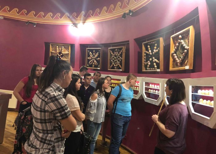 Насамкінець, по дорозі з м. Снятина до м. Івано-Франківська, екскурсійна група повернула до м. Коломиї і відвідала Музей писанкового розпису. Екскурсовод, науковий співробітник цього Музею Ірина Миколаївна Блонська розповіла про становлення, етапи розвитку та наповнення експозиції музейного закладу. Музейний працівник вказала, що урочисте відкриття музею відбулося 24 жовтня 1987 р. у приміщенні церкви Благовіщення – пам’ятки архітектури кінця ХVІ ст. (1587 р.). Створенню музею передував тривалий шлях наполегливої пошукової й збиральницької праці наукових співробітників Коломийського музею Гуцульщини (тепер Національний музей народного мистецтва Гуцульщини та Покуття імені Й. Кобринського). Відтоді унікальний музей став справжньою візитівкою міста й області, які стали називати писанковими. Ірина Миколаївна відзначила, що Музей щороку відвідує понад сто тисяч туристів як з України, так і з багатьох країн світу, зокрема з Польщі, США, Канади, Німеччини, Австрії, Італії, Ізраїлю, Австралії, Франції. Туристів приваблює насамперед оригінальна споруда музею та можливість ознайомитися з розмаїттям самобутніх мініатюрних народних шедеврів. Підчас проведення екскурсії екскурсовод розповіла студентам-історикам про техніку розпису писанок, мальованок, шкрябанок, які створені на курячій, гусячій, страусовій чи навіть перепелиній шкаралупі. Також у дохідливій формі Ірина Миколаївна оповіла і представила декоративні яйця, оздоблені вишивкою, аплікацією насінням з різних злакових культур, соломкою, дерев’яні інкрустовані й різьблені, керамічні писанки та декоративні яйця з напівкоштовного каміння, декоровані технікою перегородчастої емалі із застосуванням золота й срібла. Загалом у фондах музею налічується понад 12 тис. унікальних творів. Основу колекції становлять писанки трьох етнографічних регіонів – Гуцульщини, Покуття та Буковини – від другої половини минулого століття і до наших днів. Проте на виставці представлені писанкові твори із різних куточків України, української діаспори, а також традиційні писанки та декоративні яйця з-понад сорока країн світу, зокрема, Польщі, Румунії, Словаччини, Канади, США, Аргентини, Австралії, Індії, Індонезії, Китаю, Японії, Ізраїлю, Шрі-Ланки, Єгипту, Алжиру.