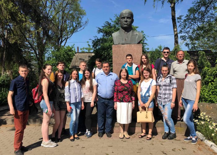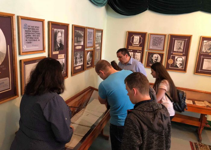 Першою екскурсійною зупинкою стало відвідання Літературно-меморіального музею Леся Мартовича у с. Торговиця Городенківського району. Завідувач Музею Гайдич Надія Леонідівна ознайомила студентів з історією його створення. Керівник музейного закладу відзначила, що матеріали про знаменитого односельця зібрав місцевий краєзнавець Василь Федорович Липчук. 12 лютого 1966 р. у двох кімнатах сільського адміністративного будинку на громадських засадах відкрито музей Леся Мартовича. Протягом вересня – грудня 1970 р. мешканці села за фінансової підтримки місцевого колгоспу побудували приміщення під новий музей з п’ятьма експозиційними залами. 12 лютого 1971 р. під час святкування сторіччя від дня народження письменника відкрито Літературно-меморіальний музей Леся Мартовича. Він став відділом Івано-Франківського краєзнавчого музею. Представляючи експонати Музею, Надія Леонідівна розповіла про життя, літературну і громадську діяльність Леся Мартовича. Тут зібрано твори Л. Мартовича – це видання різних років, а також наукові монографії, розвідки, студії про його життя і творчість, рідкісні документи, світлини, дисертаційні дослідження, спогади сучасників, ілюстрації до його творів. Представлено особисті речі письменника. Перед музеєм на постаменті стоїть погруддя Л. Мартовича. Цей пам’ятник вдячні земляки спорудили неперевершеному майстрові сатиричного слова, блискучому знавцеві народного життя на честь його 100-літнього ювілею. Письменник жив і творив за девізом: «Не для слави, а для людей». Цей вислів студенти-історики могли прочитати на кованому з міді барельєфі, який експонується у музеї. Надія Леонідівна зауважила, що яскрава, багатогранна сатира Леся Мартовича – це цінний матеріал для характеристики політики, культури і загальної атмосфери в Австро-Угорській імперії. Спадщина сатирика життєва і актуальна, вона витримала випробування часом. Безсмертні творіння письменника назавжди ввійшли в золотий фонд нашої культури.