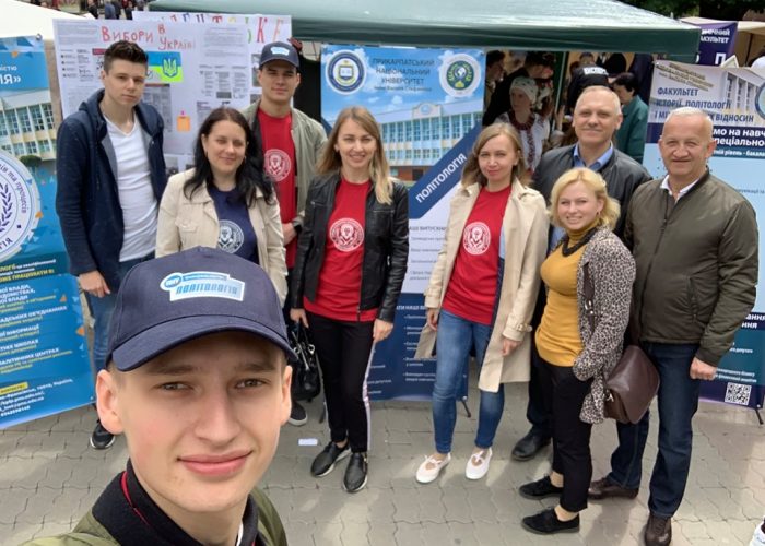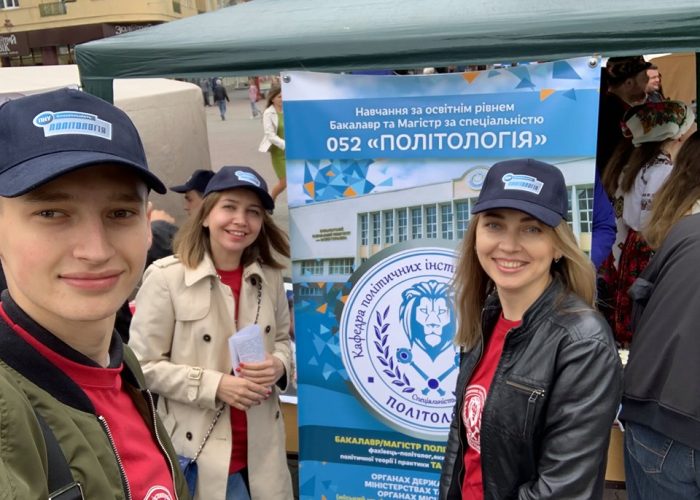 Викладачі, студенти і аспіранти кафедри політології та кафедри політичних інститутів і процесів підійшли до організації свята оригінально – підготували своєрідний флешмоб, одягнувшись у спеціальні футболки та кепки зі своєрідною рекламою спеціальності «Політологія» Факультету історії, політології і міжнародних відносин.