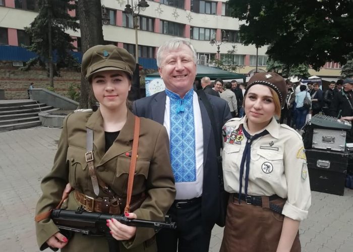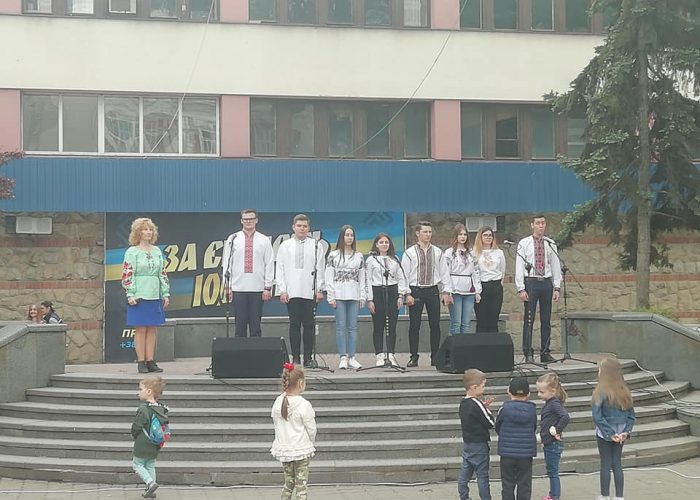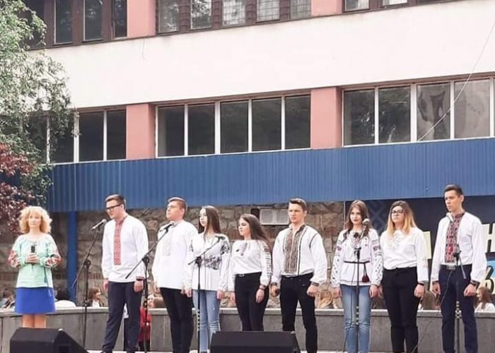 А на святковій сцені студенти-історики під керівництвом заступника декана, доцента кафедри історії України і методики викладання історії Тамари Галицької-Дідух заспівали кілька українських національно-патріотичних пісень.