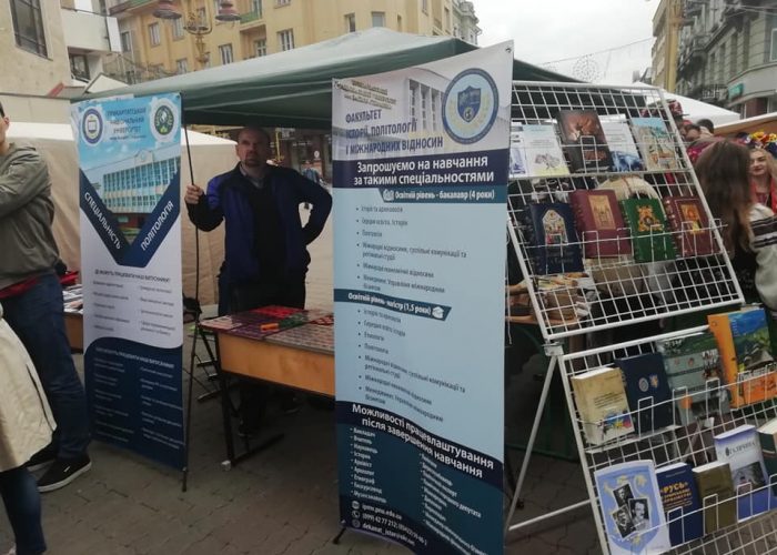Викладачі кафедри міжнародних відносин, кафедри міжнародних економічних відносин та кафедри іноземних мов та перекладу для відвідувачів організували пізнавальну акцію – «Розпізнай країну світу по її символіці», визначали серед відвідувачів кращого знавця англійської мови.
