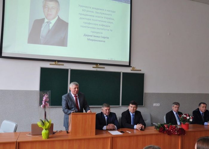 2 березня 2020 р. на Факультеті історії, політології і міжнародних відносин відбулася урочиста академія з нагоди 60-річчя доктора політичних наук, професора кафедри політичних інститутів та процесів, заслуженого працівника освіти України, відомого на Прикарпатті громадського діяча Сергія Дерев’янка. З ювілеєм шанованого вченого прийшли привітати ректор Університету Ігор Цепенда, декан Факультету Микола Кугутяк, завідувач кафедри політичних інститутів та процесів Василь Марчук, заступник директора департаменту освіти, науки та молодіжної політики Івано-Франківської ОДА Ігор Гаврилюк, колеги-викладачі, аспіранти та студенти. Сергій Миронович близько трьох десятків років присвятив рідній Альма-матер. Він є автором і співавтором понад півтори сотні наукових та навчально-методичних праць в царині політології, конституційного права, політичної історії України, історіографії та джерелознавства, окремі з яких опубліковані за кордоном. Під його науковим керівництвом дисертації на здобуття наукового ступеня кандидата наук захистили близько десятка молодих науковців. Щиро бажаємо ювіляру подальших успіхів в науковій та громадській діяльності задля розвитку вітчизняної науки, освіти та рідного краю!