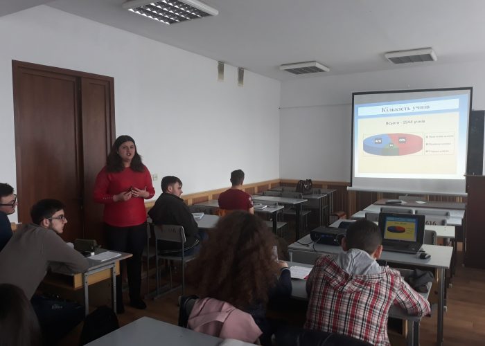 5 березня 2020 р. для студентів груп СОІ–21 і СОІ–22 спеціальності 014 Середня освіта (Історія) пізнавальну лекцію на тему «Освітній простір Тлумаччини» прочитала головний спеціаліст відділу освіти Тлумацької районної державної адміністрації, кандидат історичних наук Іванна Вікторівна Гавриш. На прикладі одного з районів Івано-Франківської області фахівець окреслила проблеми і здобутки в закладах загальної середньої освіти. Студенти почули цікаві порівняльні статистичні дані про загальну кількість закладів загальної середньої освіти (з них – навчально-виховних комплексів), закладів дошкільної освіти, закладів позашкільної освіти та кількість учнів у районі станом на початок новітніх освітніх реформ у 2017 р. і сьогодні. Іванна Вікторівна звернула увагу на певні негативні тенденції у системі початкової школи, основної школи і старшої школи, пов’язані з оптимізацією закладів загальної середньої освіти краю.