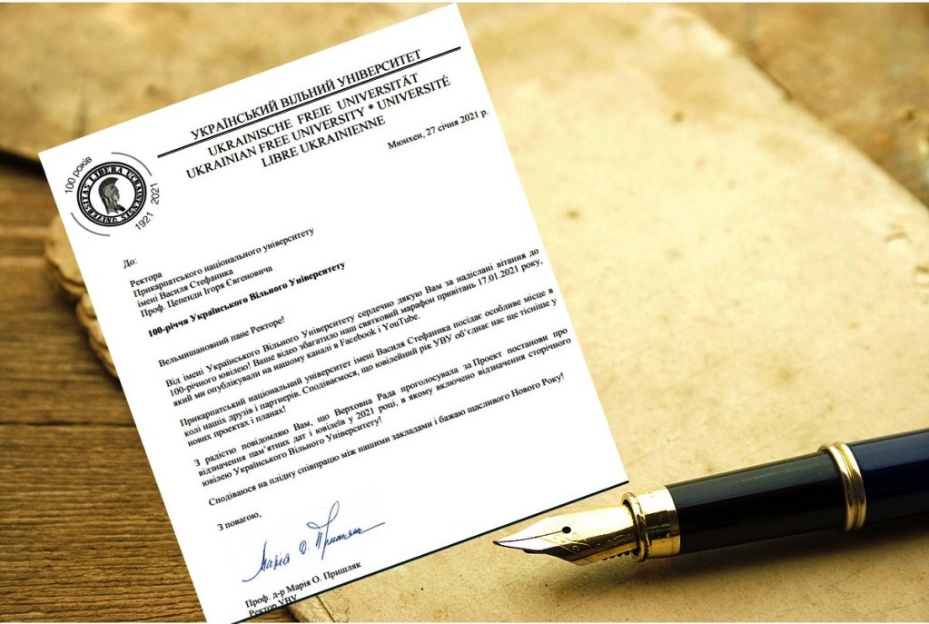 Лист-подяка від керівництва Українського Вільного Університету у м. Мюнхені