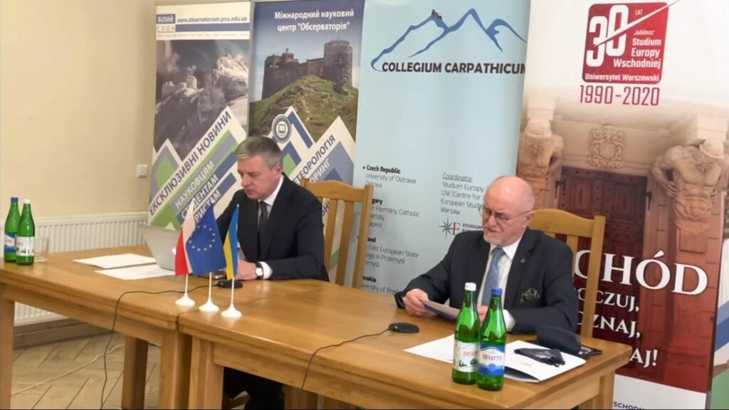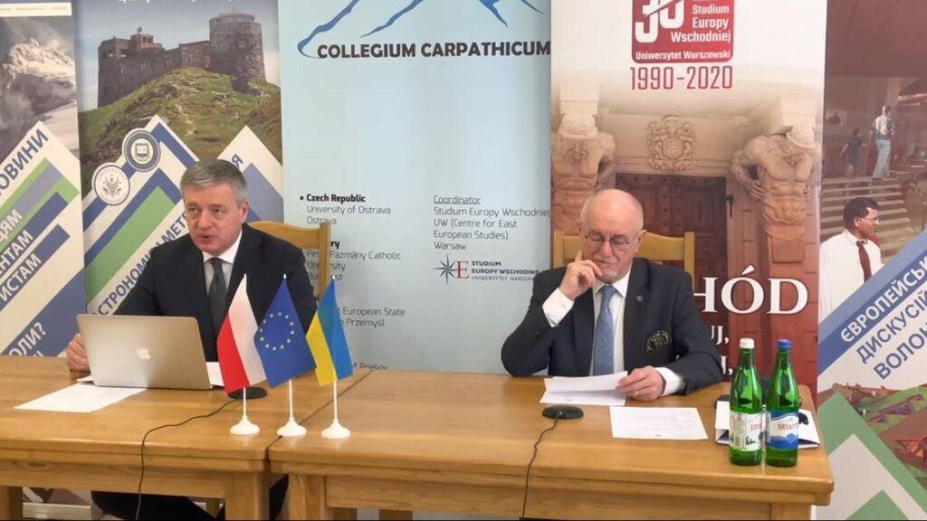 Відбулась онлайн-зустріч ректорів та координаторів проєкту Collegium Carpathicum. Відкрили засідання з вітальним словом ректор Прикарпатського національного університету імені Василя Стефаника Ігор Цепенда та директор Студій східноєвропейських досліджень Варшавського університету Ян Маліцький.