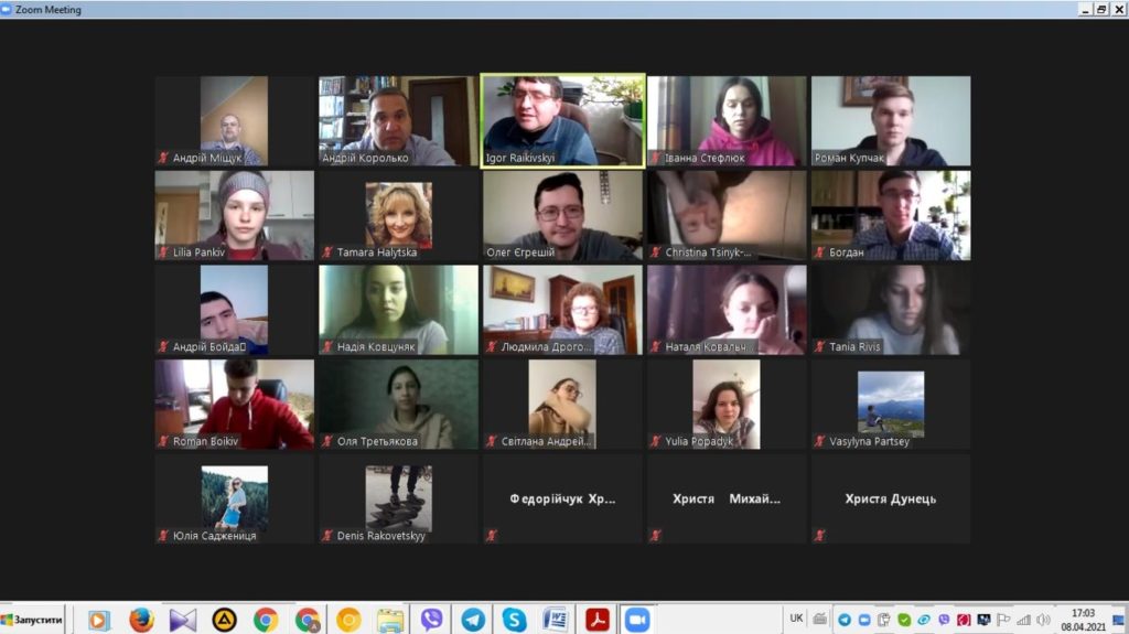 8 квітня 2021 р. на платформі Zoom відбулася онлайн-нарада з питань організації завершення навчального процесу, підготовки до державної підсумкової атестації здобувачів вищої освіти ІV курсу спеціальності 014 Середня освіта (Історія) ОР «Бакалавр» (денна і заочна форма навчання) та їхньої профорієнтації, на якій були присутні студенти Читати далі