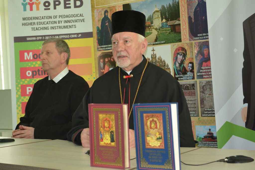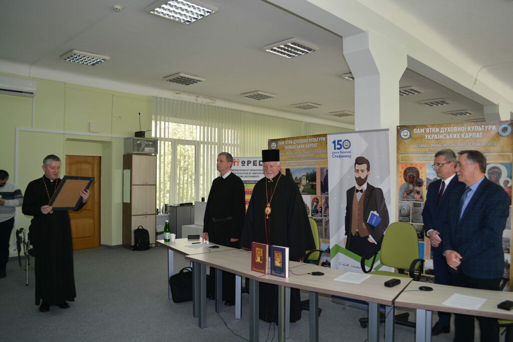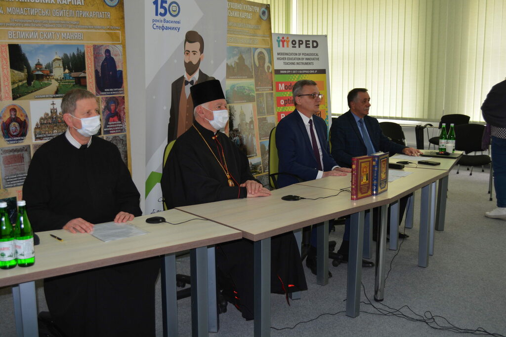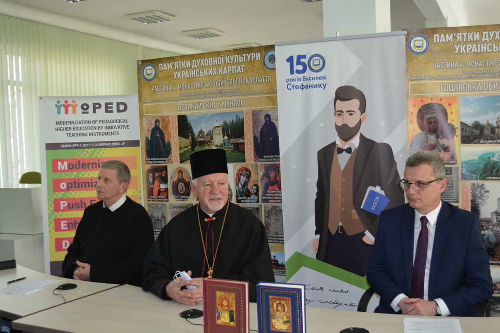 Архієпископ і Митрополит Івано-Франківський Владика Володимир Війтишин, звертаючись із привітанням до присутніх зазначив: «Коли зараз в Україні є час пандемії. Ми є у великій кризі. Все поламалося, не тільки в нас, а й в цілому світі. Десь ми міняємо наші цінності і розуміємо, що життя – це є найдорожче. Як його зберегти? І в цьому часі коли закриті школи, університети, виходять такі прекрасні збірки. Це є дійсно велика праця багатьох людей, які подарували нам нашу історію, нам її повернули. Коли ми дивимося на духовну сторону, то це якраз є і сторона наших Карпат, сторона наших бойків, які в більшості своїй живуть у Карпатах. Нам потрібно собі нагадати, що колись при монастирях і при церкві якраз була просвіта, там була вся історія. Ми почитаємо, що всі літописи, які писалися, – це у монастирях, напевно князі мали своїх літописців. Перші школи, які пам’ятаємо, у які ходили наші дідусі, прадідусі, були пов’язані з церквою. І вони навіть називали по імені священиків, які їх навчали читати, писати і Божого слова. При монастирях ми знаємо, що були друкарні, в яких друкувалися духовні книги, історичні книги, патріотичні наші українські книги. При монастирях, ми знаємо, що були і сьогодні є іконописці, які описували наші храми і монастирі. Ще потрібно пригадати, що вся документація велася якраз при парохіях, при монастирях. Кожна метрика від народження, вінчання чи потім відходу до смерті, вічності – якраз усі ці документи записувалися по наших храмах. Не така вже бідна була церква. Церква якраз була найбільше розвинутою. Ці монастирі і наші храми, наша Українська греко-католицька церква послужила нашому українському народові. Наші батьки себе називали «русинами» і церква у той час була русинською (українською) і на сьогодні ці монастирі є свідченням нашої віри.