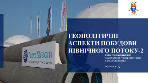 Юлія Франків представила на конкурс наукову роботу на тему: «Геополітичні аспекти побудови Північного Потоку-2». Сьогодні, дана проблематика дослідження набуває все більшої актуальності, адже Північний Потік-2 має значний вплив на європейські газові потоки і став головним викликом згуртованості ЄС та його відносин із США та Росією.