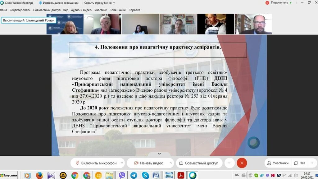 26 травня 2021 р. викладачі Факультету історії, політології і міжнародних відносин взяли участь у зустрічі наукових керівників аспірантів та гарантів освітніх програм третього освітньо-наукового рівня доктора філософії (PHD) нашого Університету.