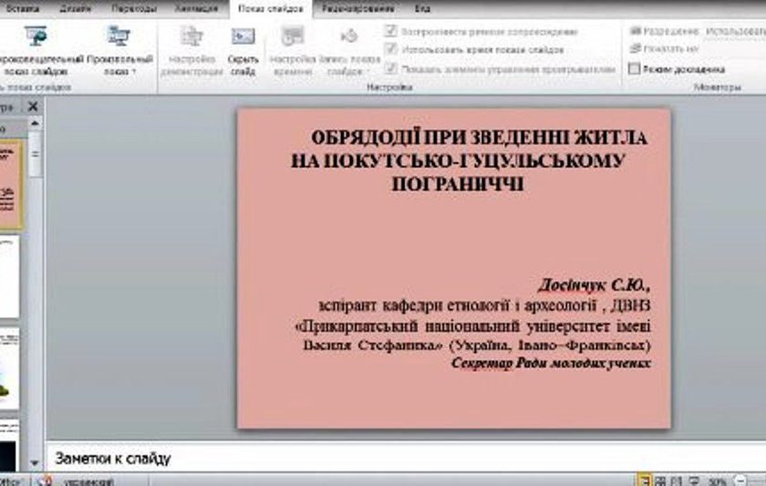 «Це дуже важливо для усвідомлення того, про що ми будемо говорити. Сьогодні Прикарпаття є дуже різноманітним в етнографічному плані. Саме тут було більше 300 поселень трипільців, тут проживають представники багатьох етнічних та субетнічних груп – гуцули, бойки, лемки, покутяни, нащадки караїмів. У ході наших досліджень за останніх 15 років тут було відкрито сотні пам’яток, в тому числі сакральної культури. Результатом цих досліджень став вихід понад 10 монографій на тему цих пам’яток. А минулого року ми завершили підготовку виставки «Пам’ятки духовної культури українських Карпат», яку презентували послам європейських країн і маємо намір показати українцям. Переважна більшість сьогоднішніх виступів присвячена календарній та родинній обрядовості. Це ті напрямки, які пов’язані з нашою духовною культурою».