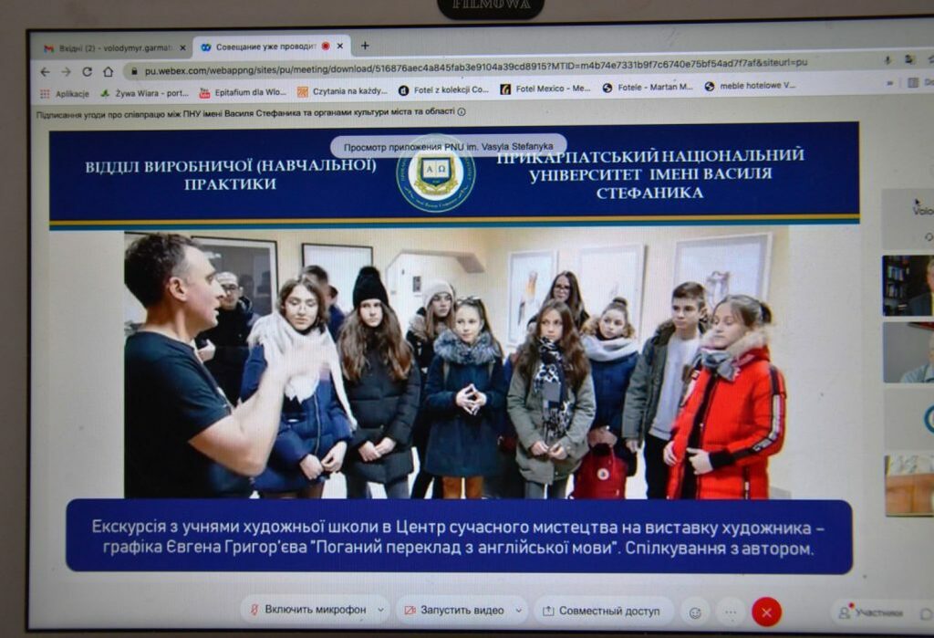 Участь в онлайн-зустрічі, організатором якої виступив відділ виробничої (навчальної) практики Прикарпатського національного університету імені Василя Стефаника, взяли також декан Факультету історії, політології та міжнародних відносин Микола Кугутяк, декан Факультету туризму Володимир Великочий, декан Факультету фізичного виховання і спорту Ярослав Яців, директор Навчально-наукового інституту мистецтв Анатолій Грицан.