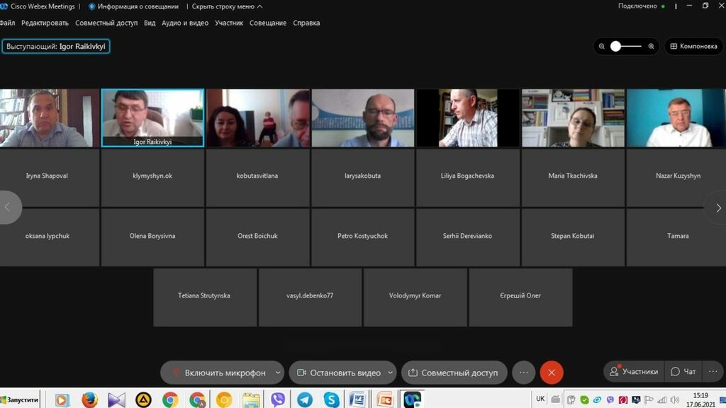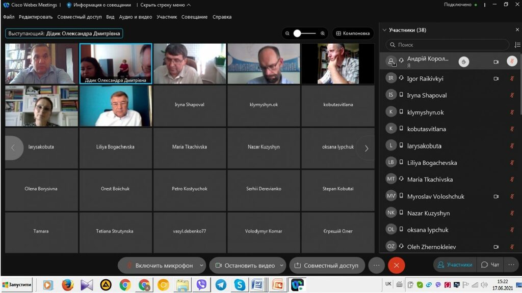 17 червня 2021 р. онлайн за допомогою сервісу платформи Cisco Webex Meeting відбулися загальні збори трудового колективу Факультету історії, політології і міжнародних відносин. На порядок денний було винесене питання заміщення вакантної посади завідувача кафедри історії України і методики викладання історії. Головуючою зборів обрано Л.В. Щербін, секретарем – О.Д. Дідик.