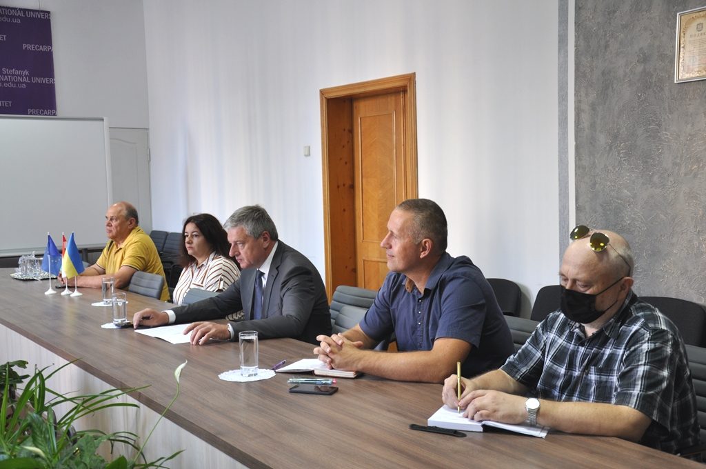 Ректор Університету Ігор Цепенда, у рамках програми візиту, провів зустріч з гостями. На ній також були присутні Почесний Консул Угорщини в м. Івано-Франківську та Івано-Франківській області Василь Вишиванюк, науковці Прикарпатського національного Університету, зокрема викладачі Факультету історії, політології і міжнародних відносин професор кафедри всесвітньої історії Мирослав Волощук і доцент цієї кафедри Лілія Щербін, професор кафедри міжнародних відносин Михайло Нагорняк та старший викладач кафедри етнології і археології Ігор Кочкін.