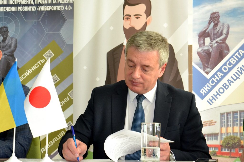 Меморандум підписали ректор Прикарпатського національного університету імені Василя Стефаника, професор Ігор Цепенда та ректор Університету Кобе Гакуіна, професор Сато Масамі.
