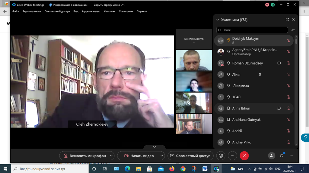 На початку зустрічі її модератор, голова Комісії з питань етики та академічної доброчесності Університету, доктор історичних наук, професор, завідувач кафедри всесвітньої історії Факультету історії, політології і міжнародних відносин Олег Жерноклеєв нагадав учасникам про базові поняття академічної доброчесності. Адже коли про неї заходить мова, дуже часто здобувачі освіти, а подекуди й викладачі, згадують лише про «плагіат». Насправді, відповідно до ст. 42 Закону України «Про освіту», порушеннями академічної доброчесності вважаються також і самоплагіат, фабрикація, фальсифікація, списування, обман, хабарництво, необ’єктивне оцінювання, вплив на науково-педагогічного працівника в будь-якій формі (прохання, умовляння, вказівка, тощо) з метою необ’єктивного оцінювання та ін. За порушення академічної доброчесності науково-педагогічні працівники та здобувачі освіти можуть бути притягнені до різних форм відповідальності. Натомість дотримання академічної доброчесності здобувачами освіти передбачає: самостійне виконання навчальних завдань, посилання на джерела інформації, дотримання норм законодавства про авторське право і суміжні права, надання достовірної інформації про результати власної навчальної (наукової, творчої) діяльності.