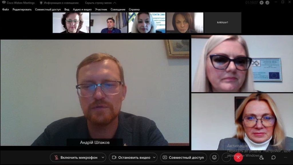 Нещодавно на онлайн платформі pu.webex.com Прикарпатського національного університету імені Василя Стефаника відбулася ознайомча робоча зустріч з представниками закладів вищої освіти, очільники яких є членами Спілки ректорів закладів вищої освіти України, зокрема – Черкаським національним університетом імені Богдана Хмельницького та Київським національним університетом будівництва і архітектури.