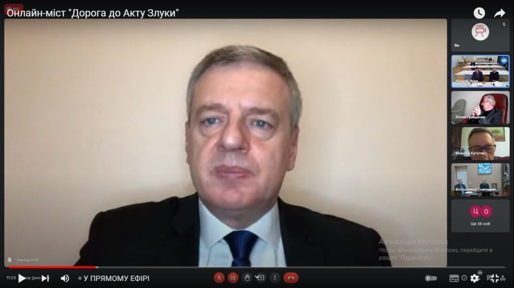 «Подія злуки УНР та ЗУНР повинна стати хрестоматією для політиків українського суспільства в розумінні того як потрібно зберігати свою державність, захищати свою державу і саме головне – розбудовувати свою державу», – зазначив у своєму виступі під час онлайн-мосту ректор Університету Ігор Цепенда.