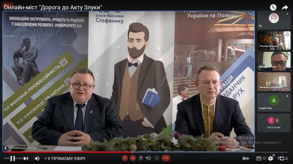 Напередодні відзначення 103-річниці з дня проголошення Акту Злуки Української Народної Республіки й Західноукраїнської Народної Республіки 21 січня 2022 р. відбувся онлайн-міст «Дорога до Акту Злуки». Ініціатором його проведення виступила кафедра новітньої історії України історичного факультету Київського національного університету імені Тараса Шевченка. Співорганізатором події виступив, зокрема, і Прикарпатський національний університет імені Василя Стефаника.