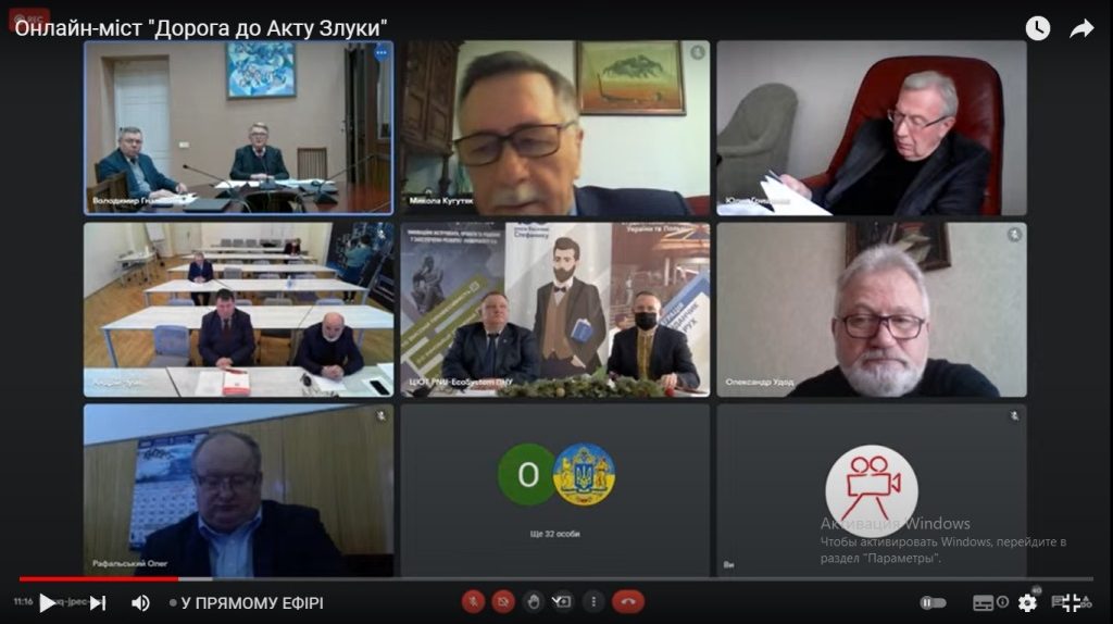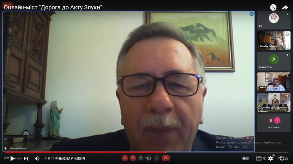 Під час онлайн-заходу науковці вкотре наголосили на тому, що Акт Злуки 22 січня 1919 р. став надзвичайно важливою подією в історії українського народу. Цим документом Українська Народна Республіка та Західно-Українська Народна Республіка, які виникли на уламках імперій, закріпили об’єднання українців в єдиній країні і стали втіленням ідеї багатьох поколінь відновити незалежну соборну українську державу. Соборність стала результатом втілення зусиль українців Наддніпрянщини та Наддністрянщини. На шляху до Акту Злуки, який проголосили і затвердили в м. Києві, відбулися важливі події у м. Львові столиці проголошеної ЗУНР, м. Фастові де було підписано передвступний договір про злуку, м. Станиславові в якому Українська Національна Рада прийняла ухвалу про злуку і сформувала делегацію ЗУНР для завершення оформлення об’єднання двох держав.