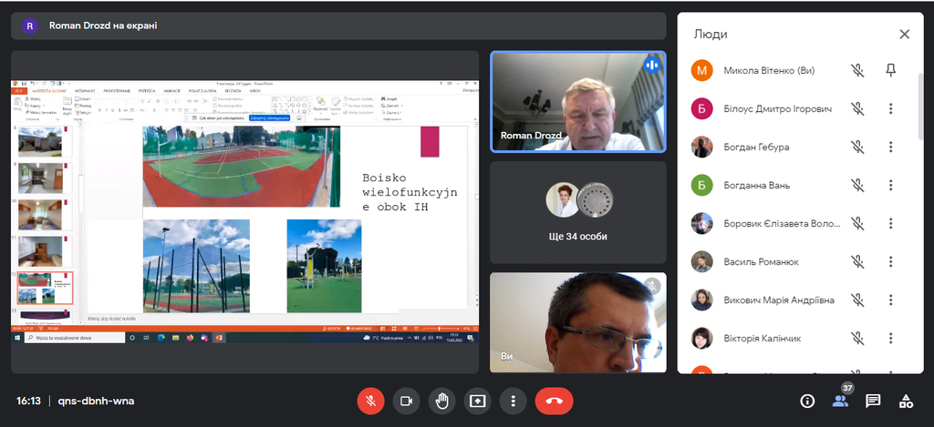 У ході зустрічі проф. Роман Дрозд ознайомив українських студентів та викладачів із можливістю навчання за програмою подвійних дипломів по спеціальності «Public History» («Публічна історія»), презентував можливості Поморської академії, щодо організації навчального та наукового процесу, дозвілля студентів, спільної польсько-української наукової діяльності.