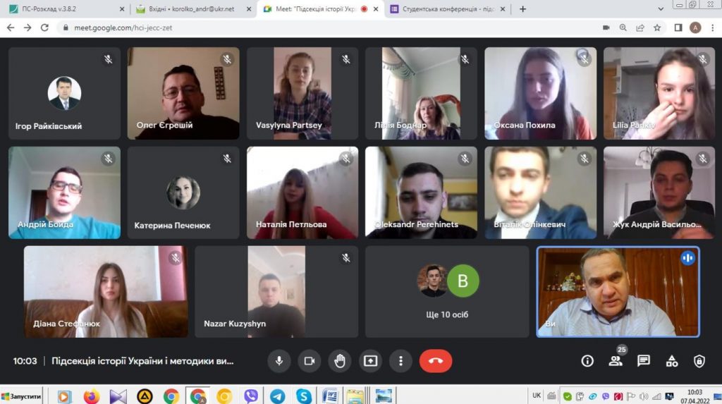 7 квітня 2022 р. відбулося звітне засідання підсекції історії України і методики викладання історії наукової конференції студентів Університету. Згідно програми звітної наукової конференції студентів Університету, було заявлено понад 30 доповідей. Проте виголосили свої доповіді 23 студенти ІІІ–ІV курсів Читати далі