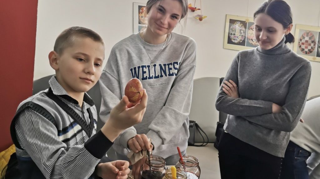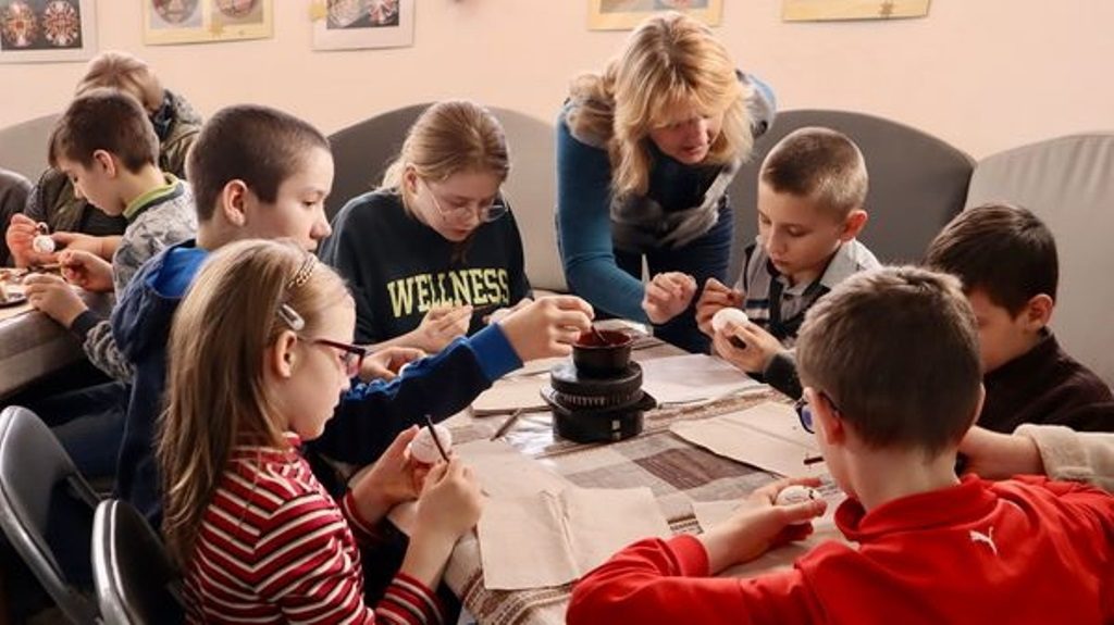 Студенти Коломийського інституту навчали дітей переселенців розписувати писанки