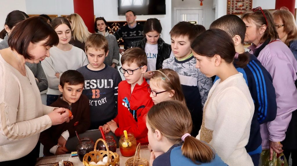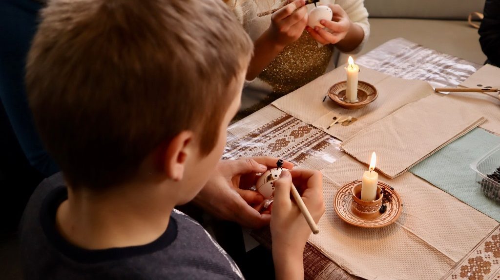 З великим бажанням зробити власноруч свою великодню писанку на майстер-клас завітали діти тимчасово переселених сімей з м. Херсону та вихованці Коломийського будинку сімейного типу. Перед початком майстер-класу учасникам розповіли про історію писанки та як її правильно розписувати.