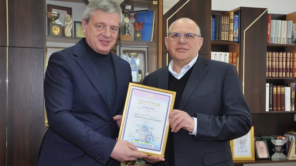 Далі ректор урочисто вручив професору, директору Інституту післядипломної освіти та довузівської підготовки Університету Михайлу Нагорняку диплом академіка Української Академії політичних наук.