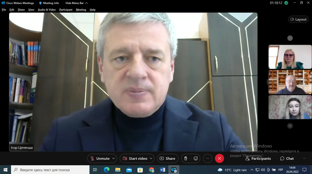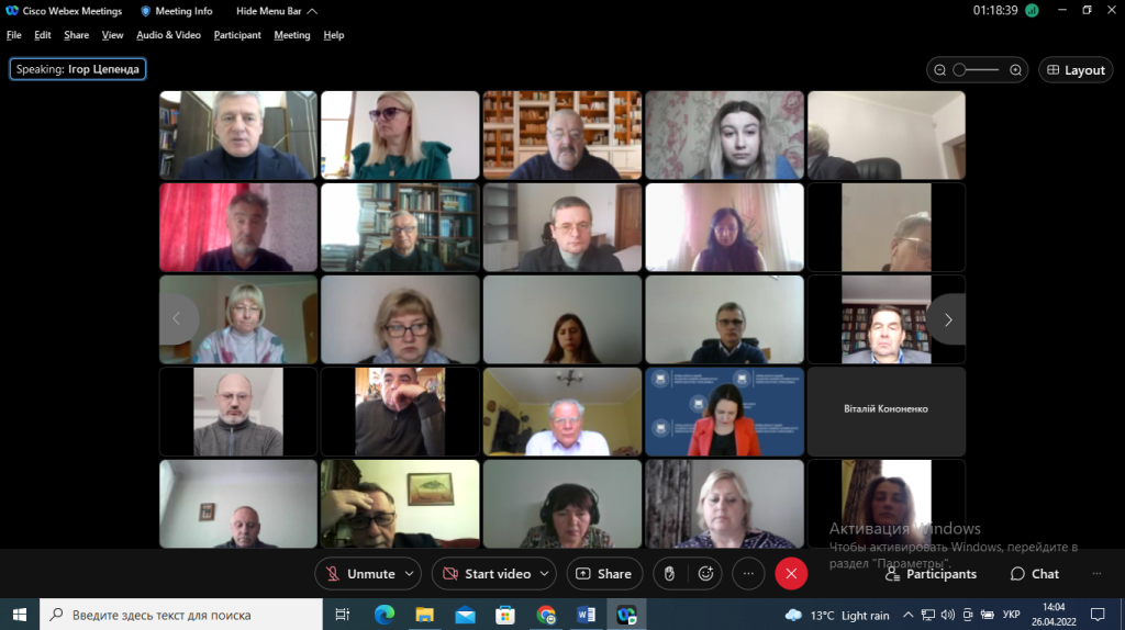26 квітня 2022 р. в Університеті відбулося онлайн чергове засідання вченої ради. Ректор Університету, професор Ігор Цепенда розпочав засідання хвилиною мовчання у пам’ять про загиблих співвітчизників, котрі загинули у боях з російським агресором.