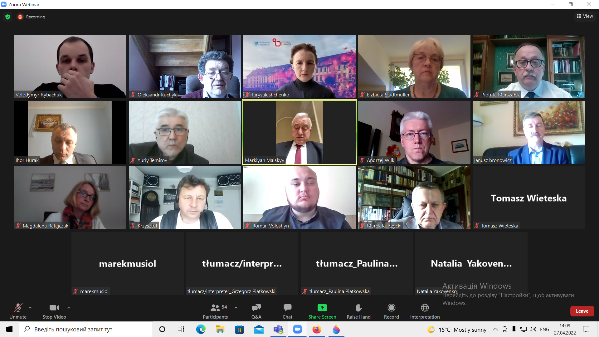 27 квітня в рамках експертної дискусії «Російський напад на Україну: наслідки для України та міжнародної безпеки» представники України та Польщі обговорили детермінанти конфлікту, його геополітичні наслідки, позиції провідних міжнародних інституцій в контексті російської агресії проти нашої держави. В ході відповідного заходу Прикарпатський національний університет імені Василя Стефаника був представлений доцентом кафедри міжнародних відносин Ігорем Гураком.