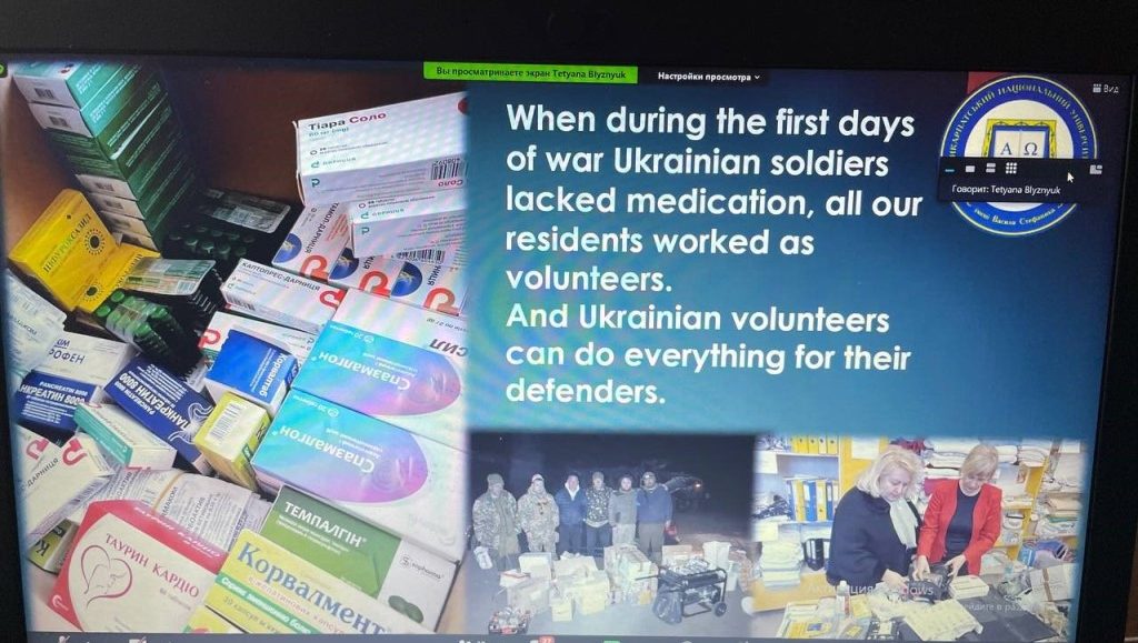 Ректор також акцентував увагу учасників зустрічі на роботу, яку веде Університет серед евакуйованих людей. Зокрема, йшлося про роботу психологів, як серед звичайних людей, так і у військових госпіталях, про культурну та мовну адаптацію біженців – від мовних курсів філологів до екскурсій містом від фахівців та студентів факультету туризму, а також фінансову підтримку університетів та колег, що постраждали від війни й роботу університету як хабу гуманітарних вантажів з Європи.