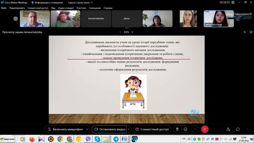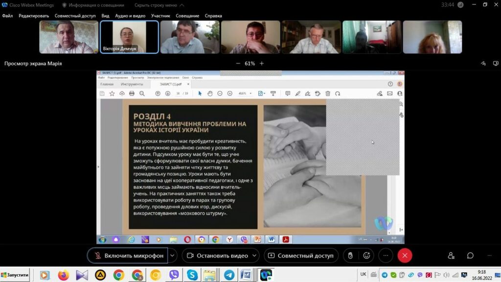 16–17 червня 2022 р. відбувся успішний захист дипломних робіт на здобуття першого (бакалаврського) рівня вищої світи студентами ІV курсу спеціальності 014 Середня освіта (Історія) ОР «Бакалвр» (заочна форма навчання) за допомогою сервісу платформи Cisco Webex Meeting. Екзаменаційна комісія діяла у такому складі: голова – проф. Райківський І.Я., члени комісії – доц. Галицька-Дідух і доц. Марущенко О.В. Усього захищали роботи 15 студентів заочної форми навчання освітнього рівня «Бакалавр». У роботі ЕК взяли також участь наукові керівники та рецензенти – професорсько-викладацький склад кафедри історії України і методики викладання історії та кафедри історії Центральної та Східної Європи і спеціальних галузей історичної науки. Виступи студентів-випускників були цікавими, змістовними, охоплювали різні аспекти (політичні, культурні, економічні, соціальні та ін.) історії України та методики навчання історії в школі. Комісія звернула увагу на високий рівень підготовки, оволодіння фаховими компетентностями випускників спеціальності 014 «Середня освіта (Історія)» ОР «Бакалавр» (заочна форма навчання).