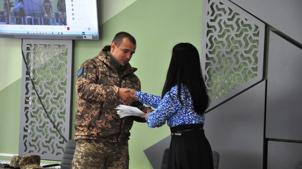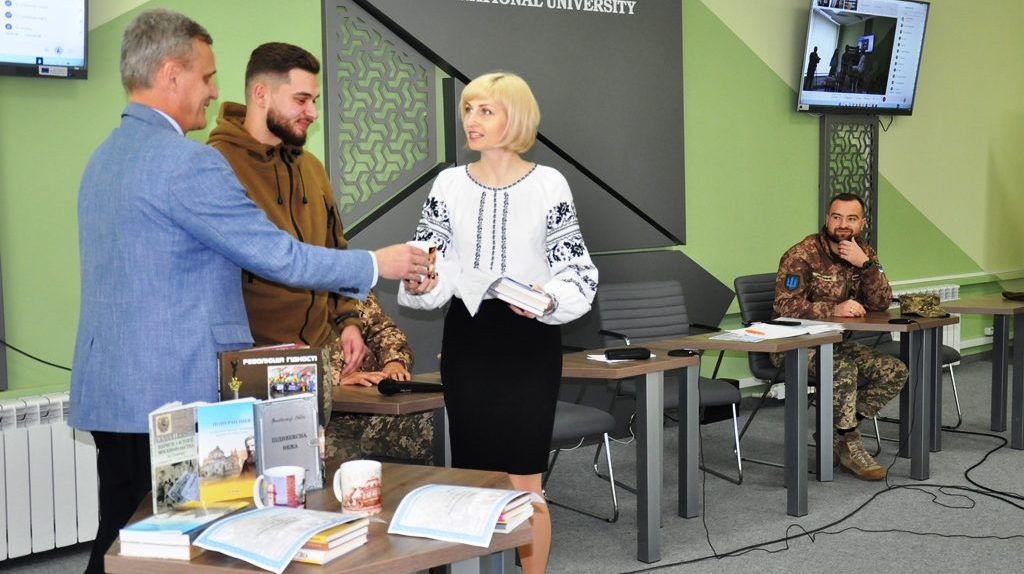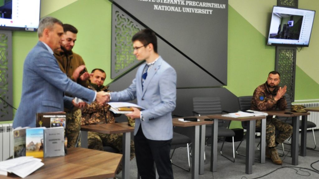 Під час урочистого заходу т.в.о. ректора Університету Сергій Шарин, співорганізаторка конкурсу Галина Волощук та військовий Дмитро Симчишин вручили переможцям та призерам конкурсу-флешмобу грамоти Університету та пам’ятні сувеніри.
