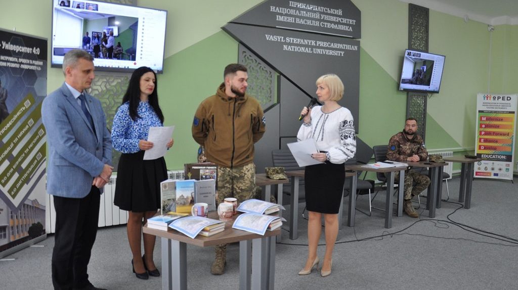 Сьогодні, 26 жовтня, у Прикарпатському національному університеті імені Василя Стефаника відзначили переможців та призерів конкурсу-флешмобу «Напиши лист-31 побажання Україні та захиснику України». На урочистому заході були присутні т.в.о. ректора Університету Сергій Шарин, співорганізаторка конкурсу, доцентка Галина Волощук, переможці та призери, військові 109 окремого гірсько-штурмового батальйону 10 окремої гірсько-штурмової бригади – Володимир Глизнер, Іван Щасливий, Дмитро Симчишин. Усі охочі мали можливість долучитися до події онлайн на платформі Webex.