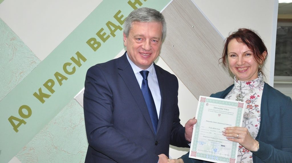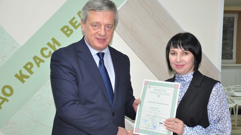 Ректор Прикарпатського національного університету імені Василя Стефаника Ігор Цепенда вручив свідоцтва Прикарпатського університету та Краківського економічного університету про закінчення післядипломного навчання у рамках проєкту «Управління в українських органах місцевого самоврядування для лідерів, менеджерів середнього рівня, фахівців з публічних послуг громади» програми USAID «Децентралізація приносить кращі результати та ефективність» (DOBRE).