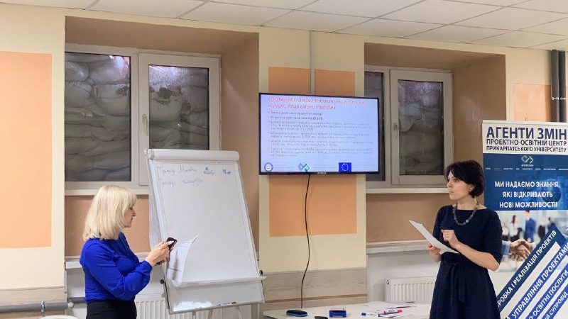 Головними спікерами тренінгу були фахівчині Центру «Агенти змін» Університету Тетяна Мигович та Тетяна Солоджук. Вони розповіли про план реалізації проєкту, охарактеризували сутність та основні статті витрат бюджету, описали ризики та основи розробки стратегії їх мінімізації, а також звернули увагу на необхідність зберігання усіх підтверджуючих документів для формування описової та фінансової звітності.