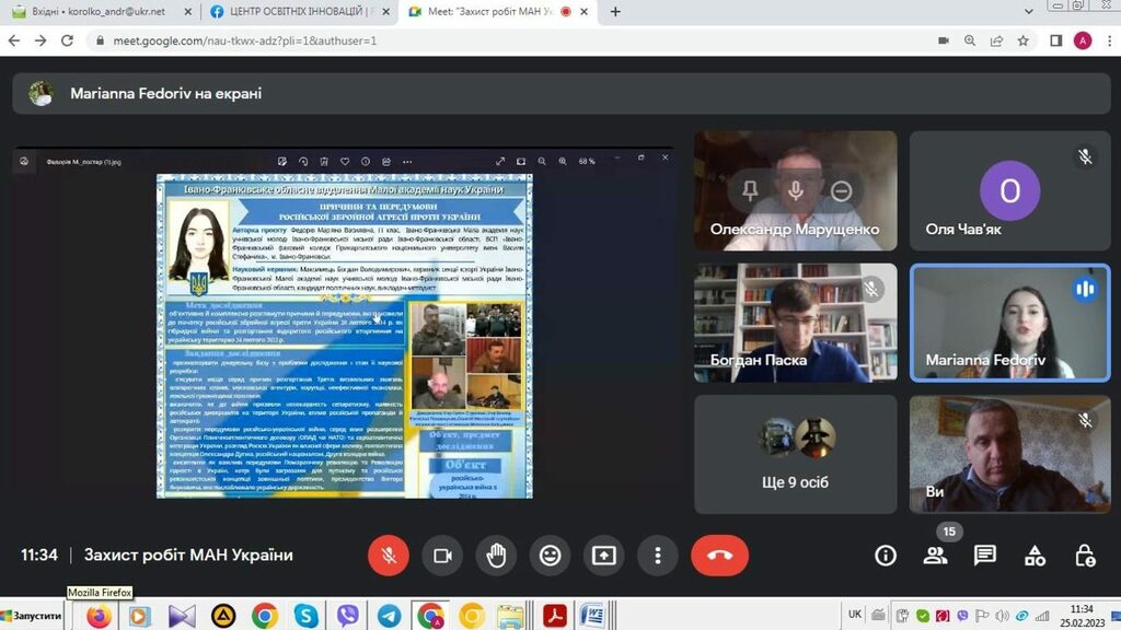Проведення ІІ (обласного) етапу Всеукраїнського конкурсу-захисту науково-дослідницьких робіт учнів-членів Малої академії наук України в умовах лихоліть російсько-української війни проводилося дистанційно в три етапи. Структурно поділ балів оцінювання конкурсних робіт виглядав так: заочне оцінювання науково-дослідницьких робіт (максимальна кількість балів – 20); постерний захист (максимальна кількість балів – 45); наукова конференція (максимальна кількість балів – 35).