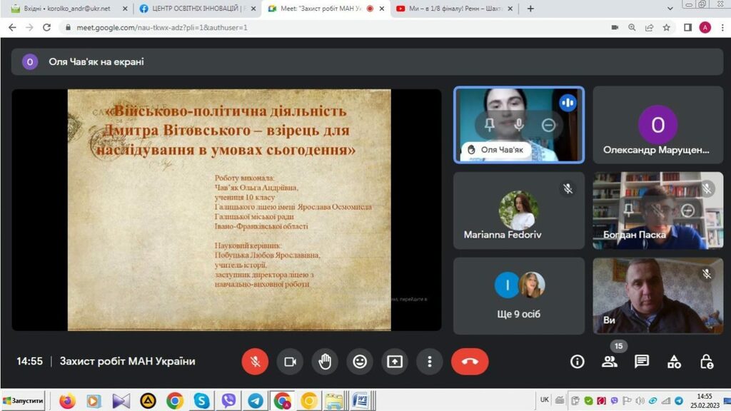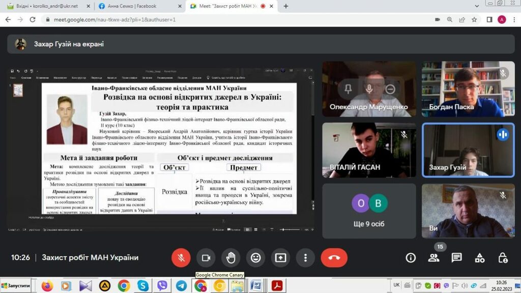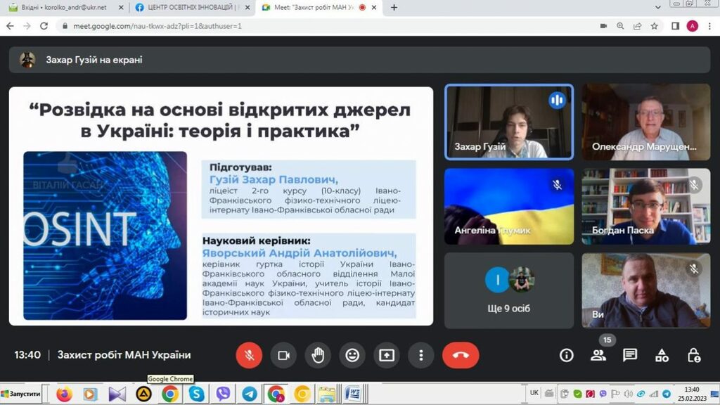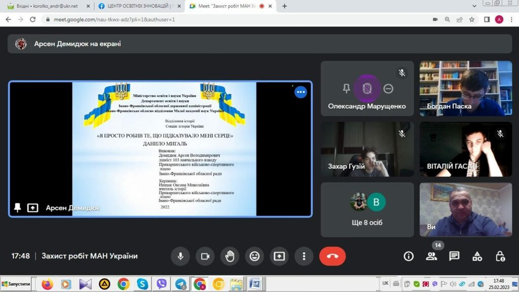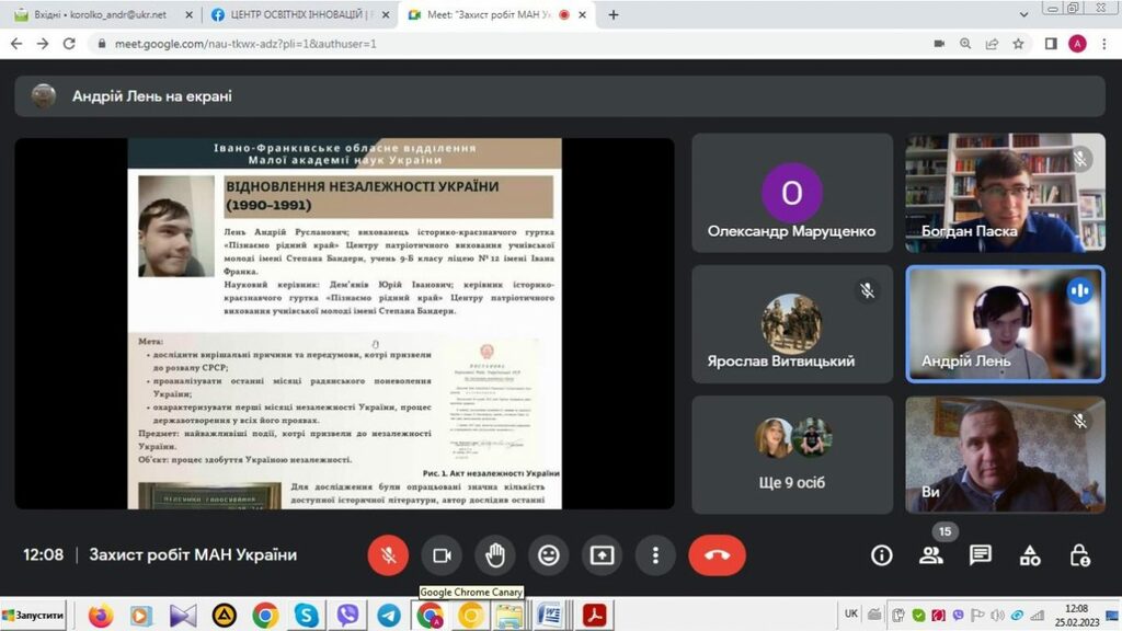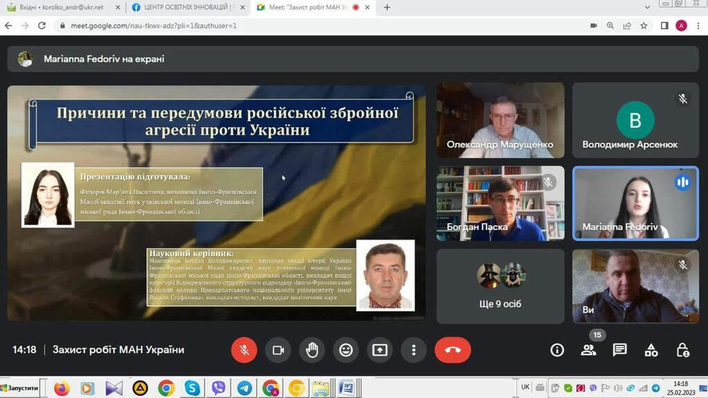 25–26 лютого 2023 р. на базі Прикарпатського національного університету імені Василя Стефаника тривав ІІ (обласний) етап Всеукраїнського конкурсу-захисту науково-дослідницьких робіт учнів-членів Малої академії наук України. Вихованці відділення історії МАН України захищали своїх роботи 25 лютого 2023 р. До складу журі секцій відділення історії ввійшли викладачі Факультету історії, політології і міжнародних відносин: секція «Історія України» – Олександр Марущенко, Андрій Королько і Богдан Паска (12 учнівських робіт); секція «Історичне краєзнавство» – Ігор Райківський, Олег Єгрешій і Лілія Бурачок (8 учнівських робіт); секції «Етнологія», «Всесвітня історія», «Археологія» – Ігор Кочкін, Лілія Щербін та Ірина Солонець (9 учнівських робіт).