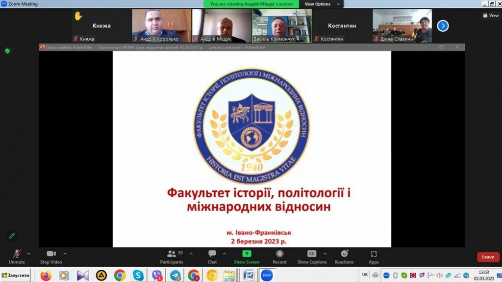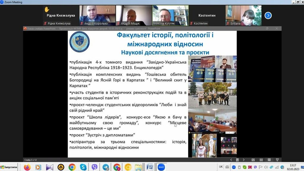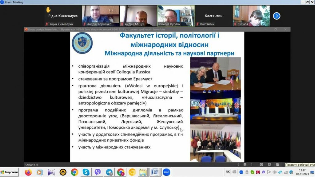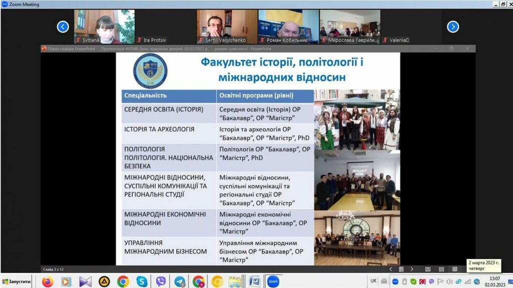 2 березня 2023 р. у рамках проєкту «Університет для учнів», який здійснює Прикарпатський національний університет імені Василя Стефаника, представники Факультету історії, політології і міжнародних відносин за допомогою відео конференції Zoom зустрілись з майбутніми абітурієнтами – школярами закладів загальної середньої освіти Долинської міської територіальної громади. Зокрема, серед присутніх на заході були учні Долинських ліцеїв «Інтелект», №4, №5, №6 і №7, Малотур’янського ліцею, Лоп’янського ліцею, Княжолуцького ліцею.