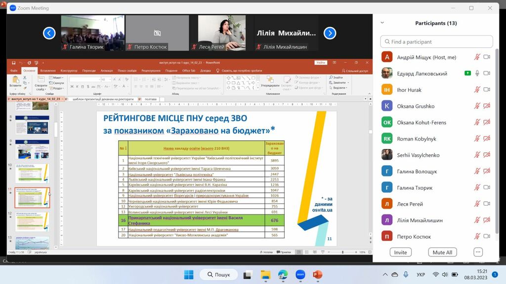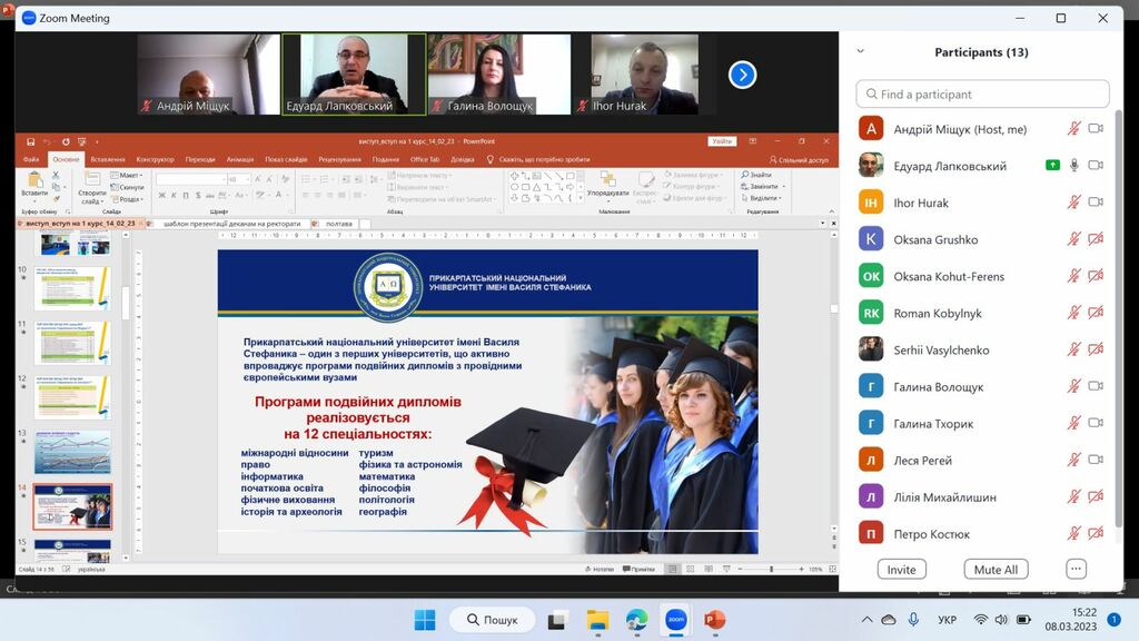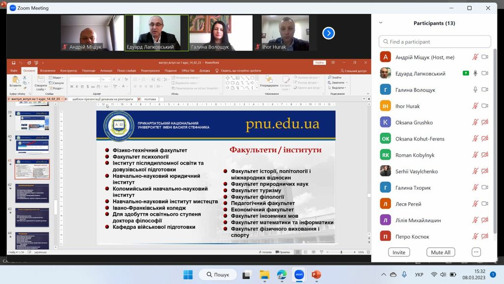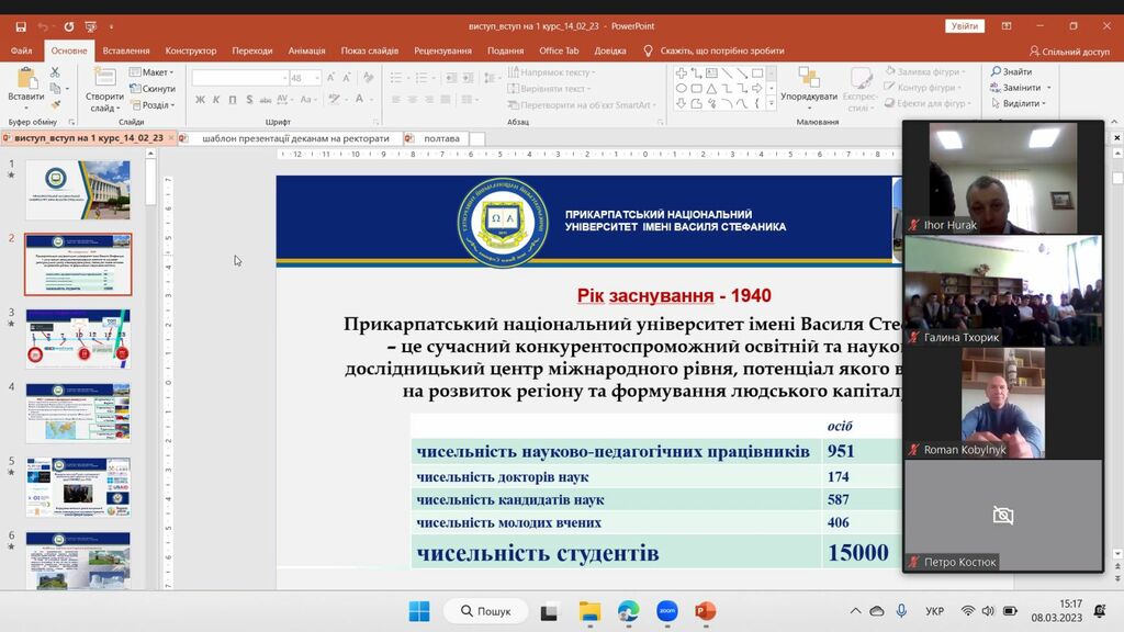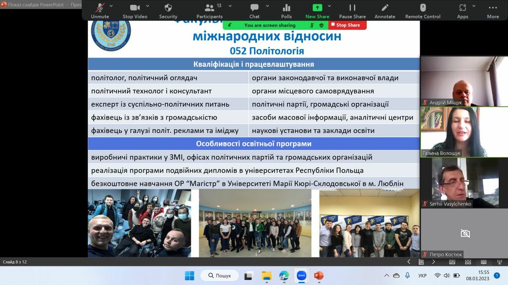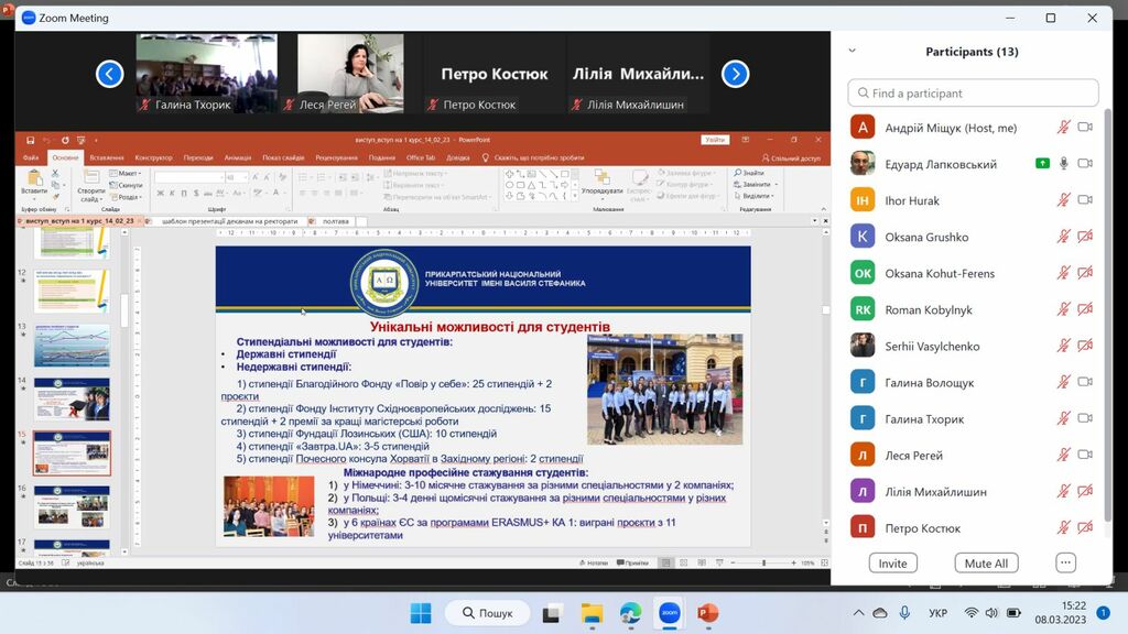 8 березня 2023 р. у рамках проєкту «Університет для учнів», який здійснює Прикарпатський національний університет імені Василя Стефаника, представники Факультету історії, політології і міжнародних відносин за допомогою відео конференції Zoom зустрілись з майбутніми абітурієнтами – школярами закладів загальної середньої освіти Єзупільської ТГ.