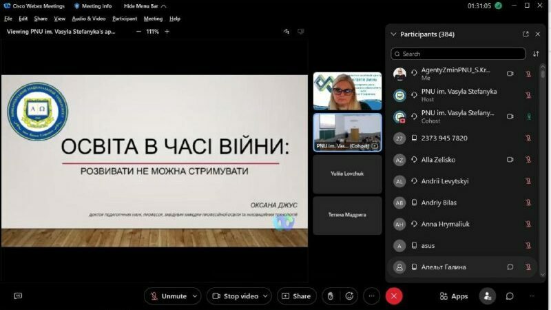 Далі, у межах програми пленарного засідання, з доповідями виступили науковці Університету – Галина Русин, докторка педагогічний наук, доцентка, на тему «Тенденції розвитку української етнопедагогіки на західноукраїнських землях (1772–1939 рр.)» та Оксана Джус, докторка педагогічних наук, професорка, завідувачка кафедри професійної освіти та інноваційних технологій, з доповіддю «Освіта в часі війни: розвивати не можна стримувати».