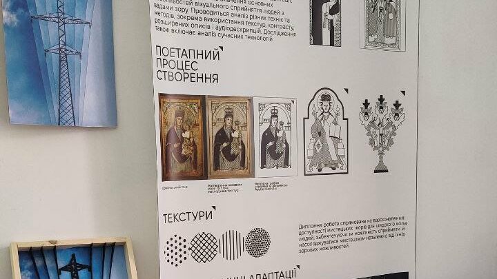 На презентації проєкту було представлено ряд адаптацій творів мистецтва для осіб з вадами зору, виконаних за допомогою технологій тифлографіки, 3D друку, термоформування та інших, які успішно в ході його реалізації було опановано працівниками Університету. Відвідувачі з цікавістю оглядали експозицію, дізнавалися про реалії та перспективи адаптації середовищ для осіб з вадами зору, відзначали важливість цієї сфери діяльності для сучасного українського суспільства, зокрема, в контексті наслідків війни.