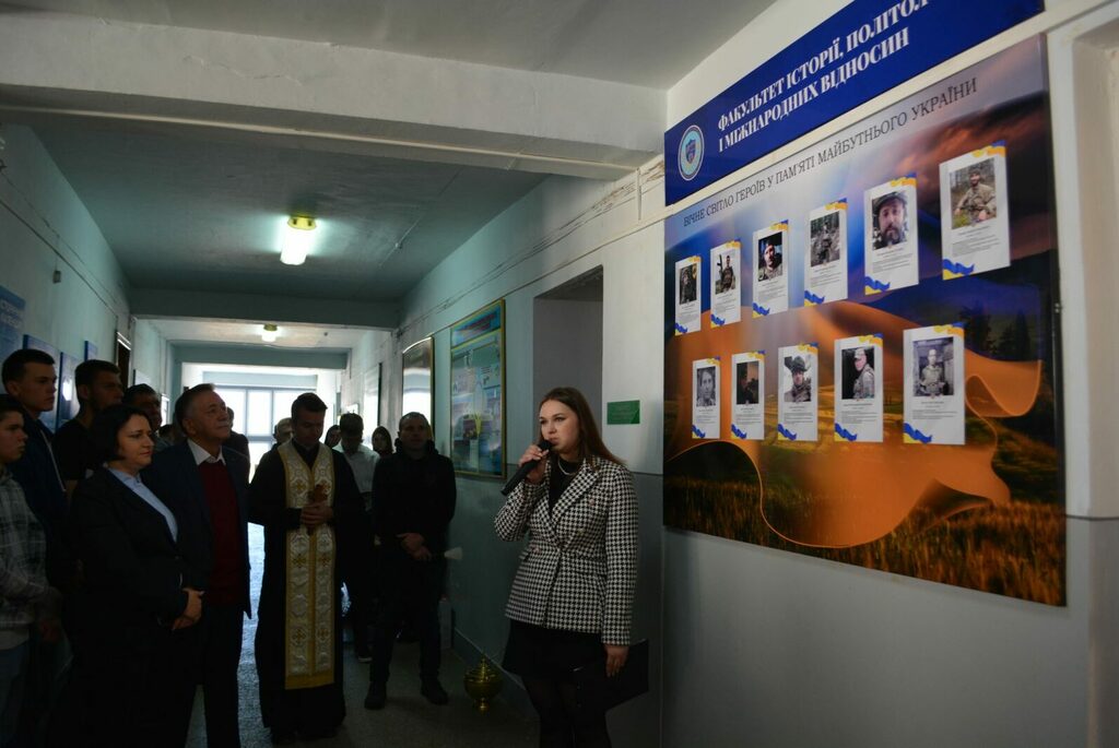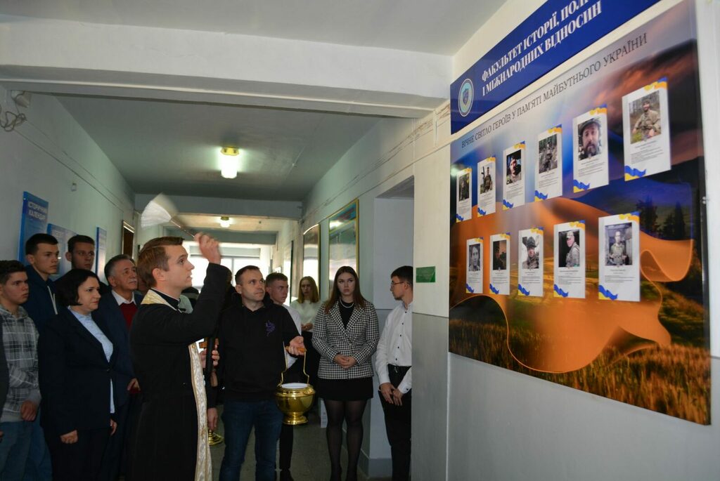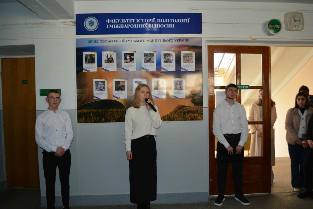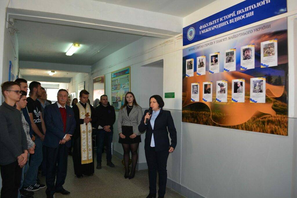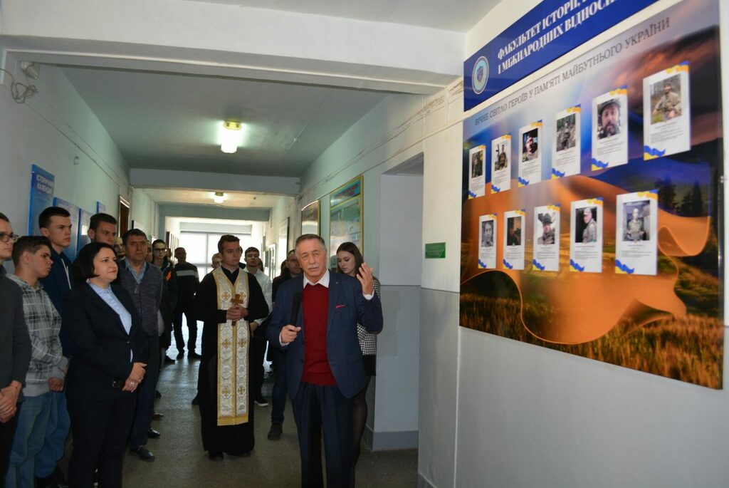 На початку присутні студенти та викладачі вшанували пам’ять полеглих воїнів. Після чого відбулося освячення пам’ятного стенду Героям у холі Факультету історії, політології і міжнародних відносин.