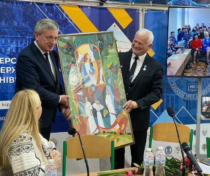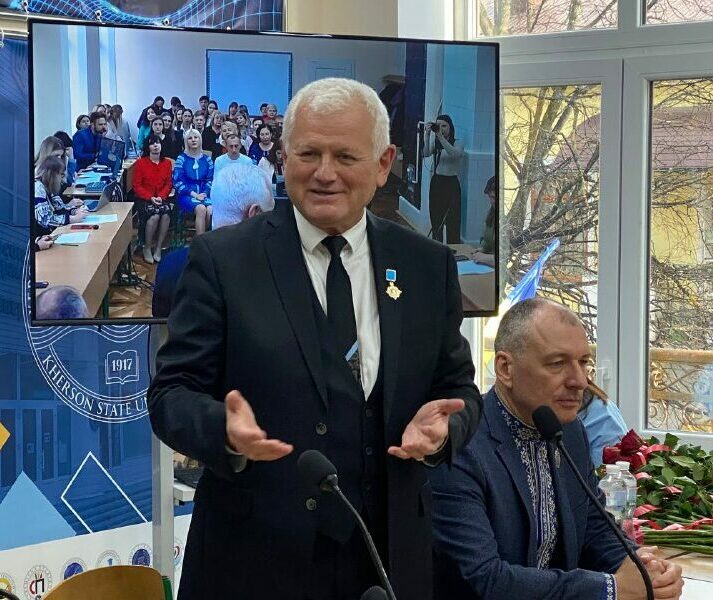 «Шановний пане ректоре, дорога родино Херсонського державного університету, колеги, які присутні тут на місці та онлайн, я щиро вітаю вас з черговою річницею! Це подія, яка не тільки заслуговує уваги, але й час певних роздумів. Адже кожен день роботи Херсонського університету в умовах відкритої агресії росії є не тільки подвигом, а й взірцем для багатьох університетів України та світу. Та історія, яку ви сьогодні пишете, стає хрестоматійною для багатьох освітян. Ви не просто зламали всі жахливі плани кремля, а й почали формувати нове покоління. Оновлений Херсон буде завдячувати вам за це. Ви одні з небагатьох, які не тільки зберегли інституцію, а й зберегли своїх людей та тих, хто буде відбудовувати Херсон та Україну. Радіємо з того, що у такий важкий час доля звела нас разом. Для нас це великий урок та досвід, а найголовніше, що ми отримали – це дружбу! Дякуємо!», – підкреслив у вітальному слові ректор Прикарпатського національного університету імені Василя Стефаника Ігор Цепенда.
