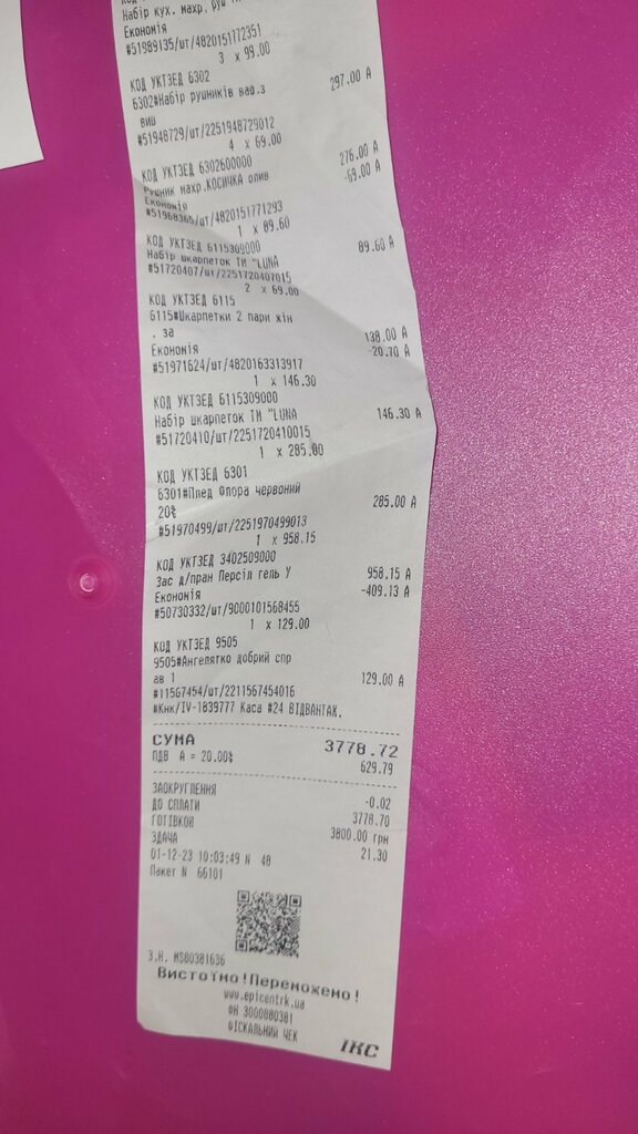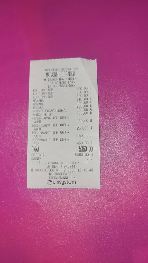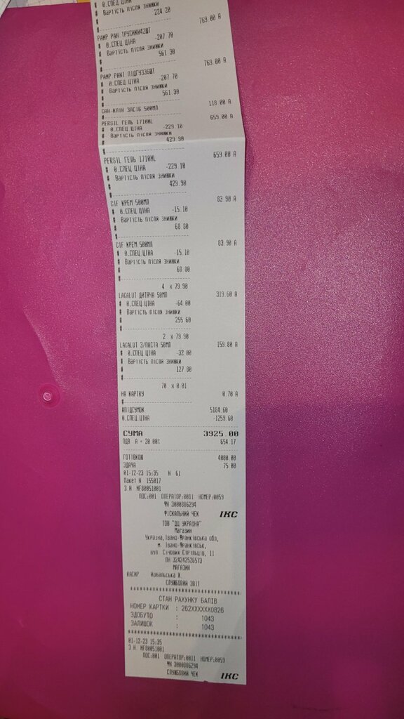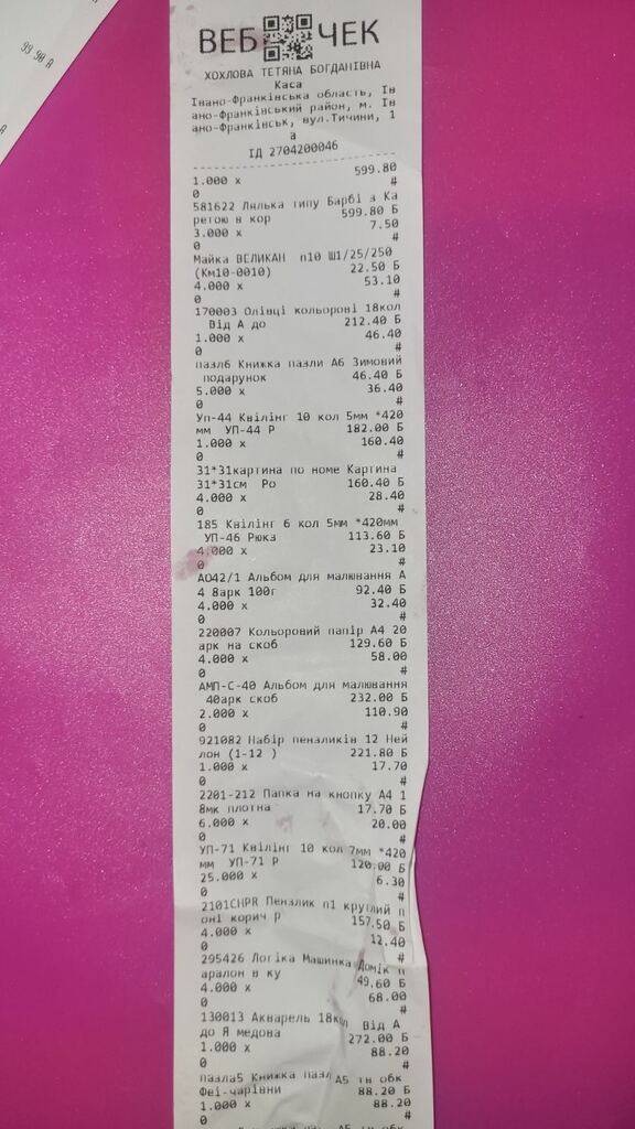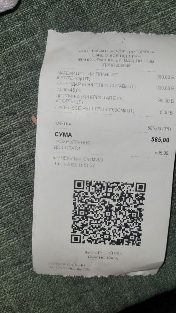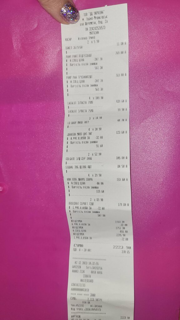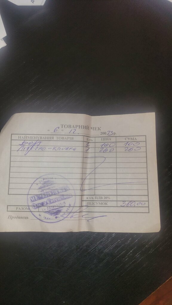 P.S. Чеки про оплату додаються.