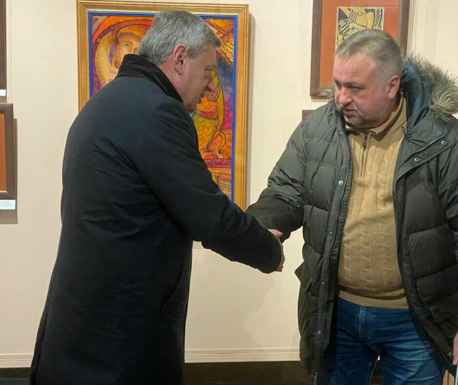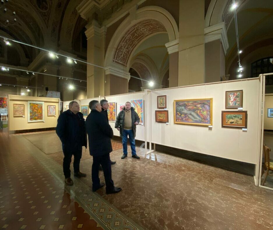 Сьогодні ректор Прикарпатського національного університету імені Василя Стефаника Ігор Цепенда відвідав експозицію під назвою «Літургія серця» та особисто привітав із 50-річчям завідувача кафедри дизайну і теорії мистецтва Олега Чуйка, побажавши ювілярові невичерпного натхнення, подальшого успіху та творчого злету!
