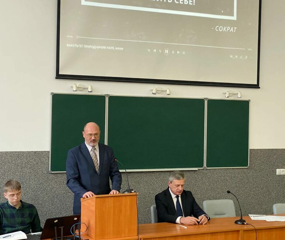 Після урочистої частини, розпочалося розширене засідання вченої ради за участі працівників факультету природничих наук, де йшлося про підсумки наукової роботи за 2023 рік.