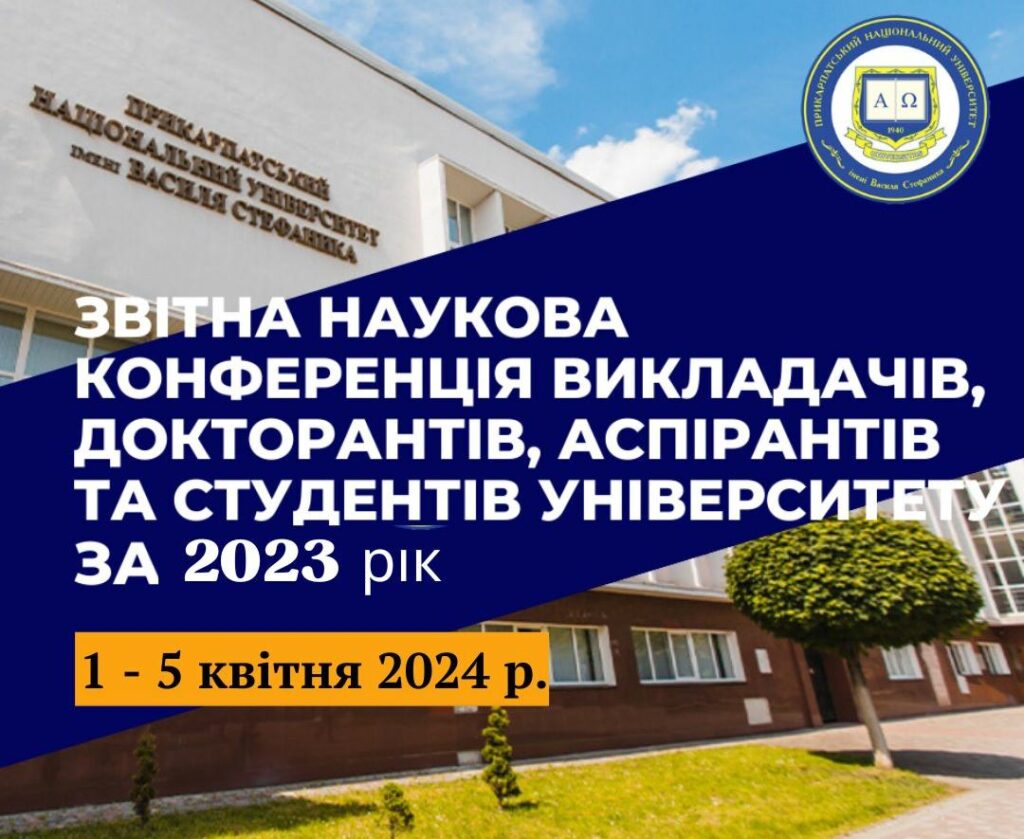 1–5 квітня 2024 р. у Прикарпатському національному університеті імені Василя Стефаника відбудеться звітна наукова веб-конференція викладачів, докторантів, аспірантів та студентів університету за 2023 рік. 01.04.2024 о 14 00 год – дистанційне пленарне засідання за допомогою системи Читати далі