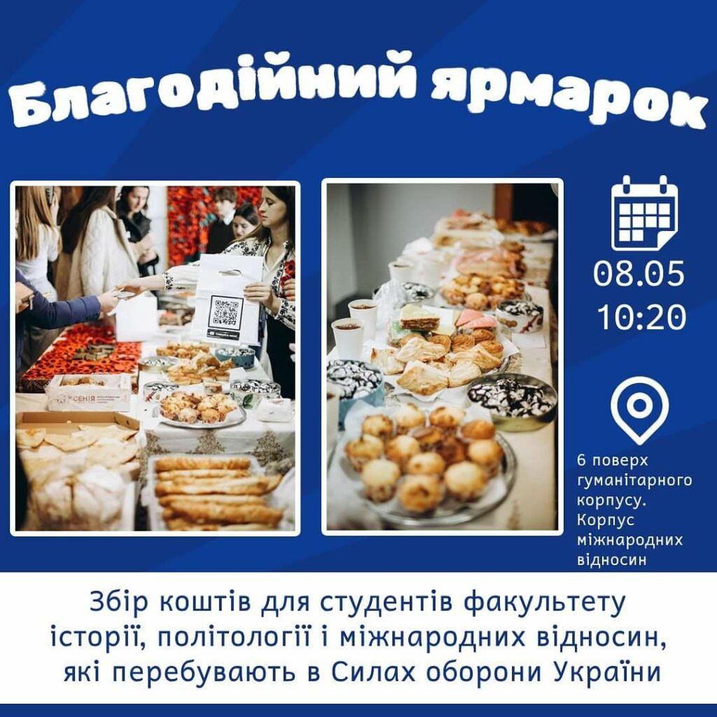 8 травня о 10:20 год. в гуманітарному та міжнародному корпусах Прикарпатського національного університету відбудеться благодійний ярмарок. Усі виручені кошти підуть на допомогу студентам Факультету історії, політології і міжнародних відносин, які перебувають в Збройних Силах України. Читати далі